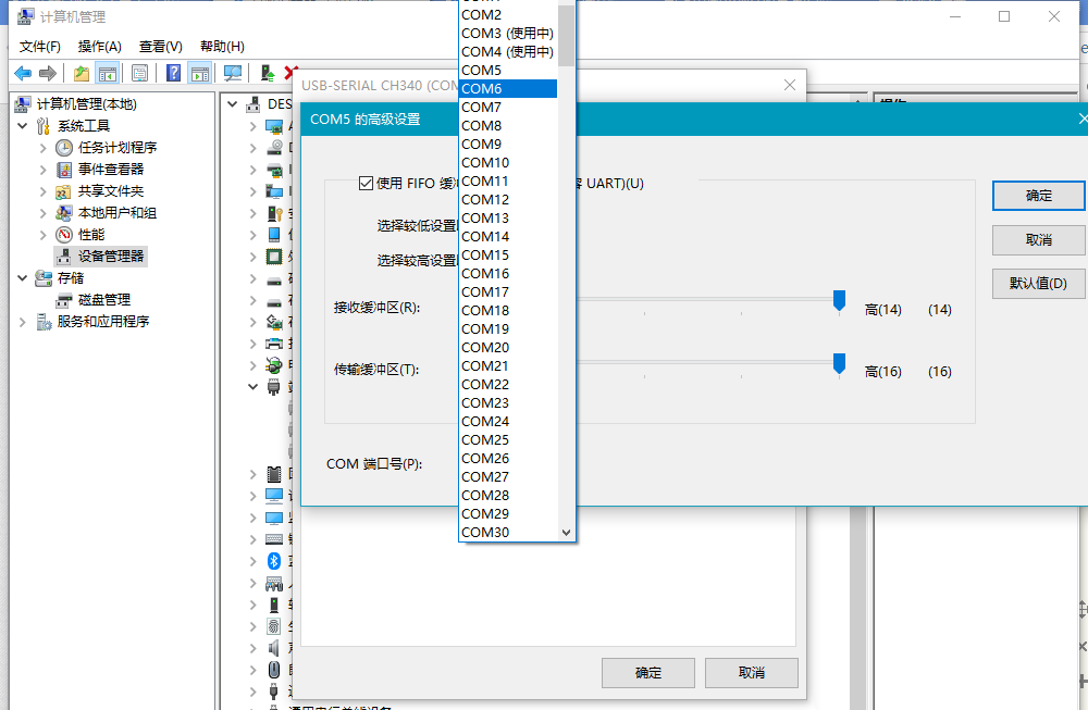 3、找到打印機(jī)對(duì)應(yīng)的設(shè)備,右擊屬性,點(diǎn)擊端口設(shè)置,再點(diǎn)擊下面的高級(jí)設(shè)置,在COM端口號(hào)中的下拉列表中選擇正確的COM端口號(hào),注意不要和已被占用的端口產(chǎn)生沖突