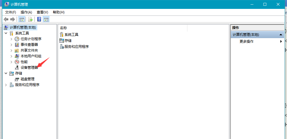 2、在打開的“計(jì)算機(jī)管理”窗口的左側(cè)“計(jì)算機(jī)管理(本地)”的系統(tǒng)工具中找到并點(diǎn)擊“設(shè)備管理器”