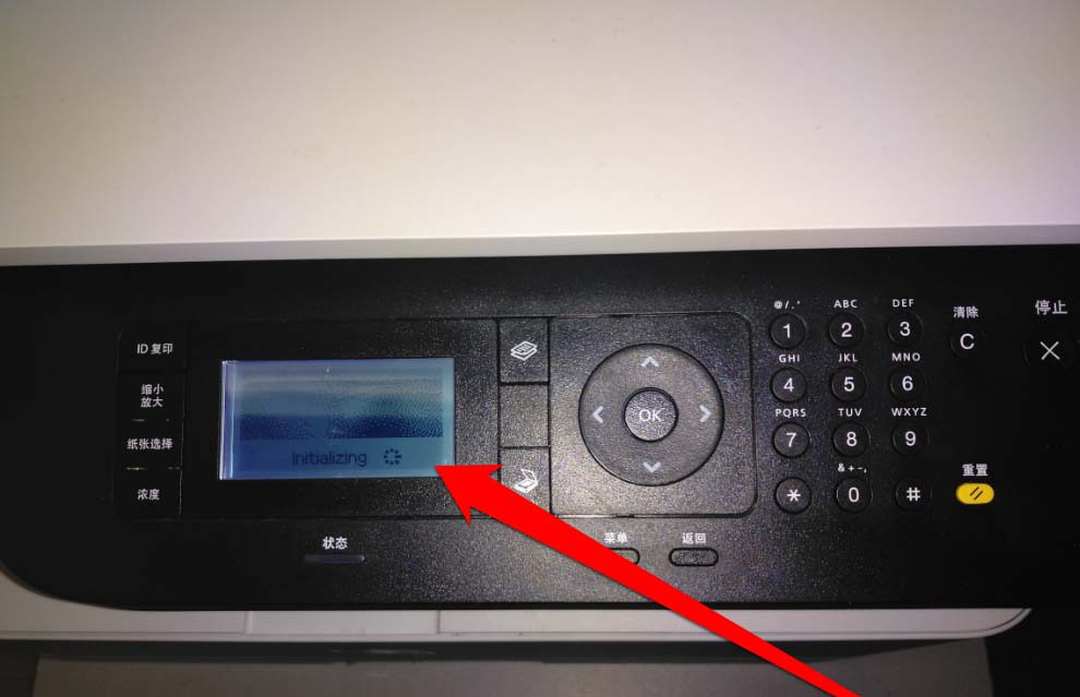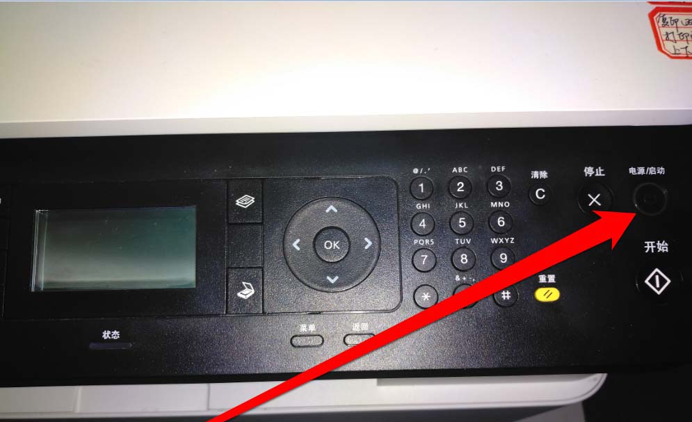 3、打印機啟動后,顯示正常,我們在面板找到啟動按鈕。