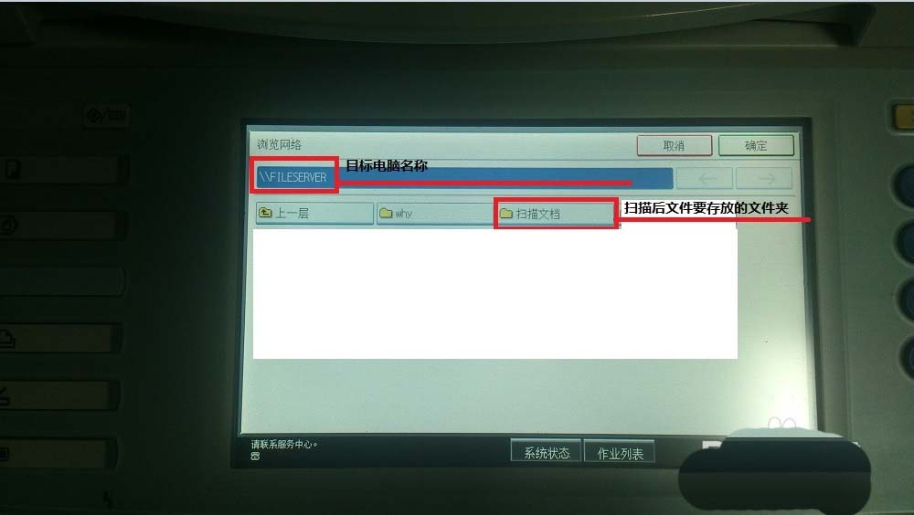 5、選擇要存放掃描文件的電腦按鈕,各個(gè)公司網(wǎng)絡(luò)不同,建議咨詢本公司網(wǎng)管。