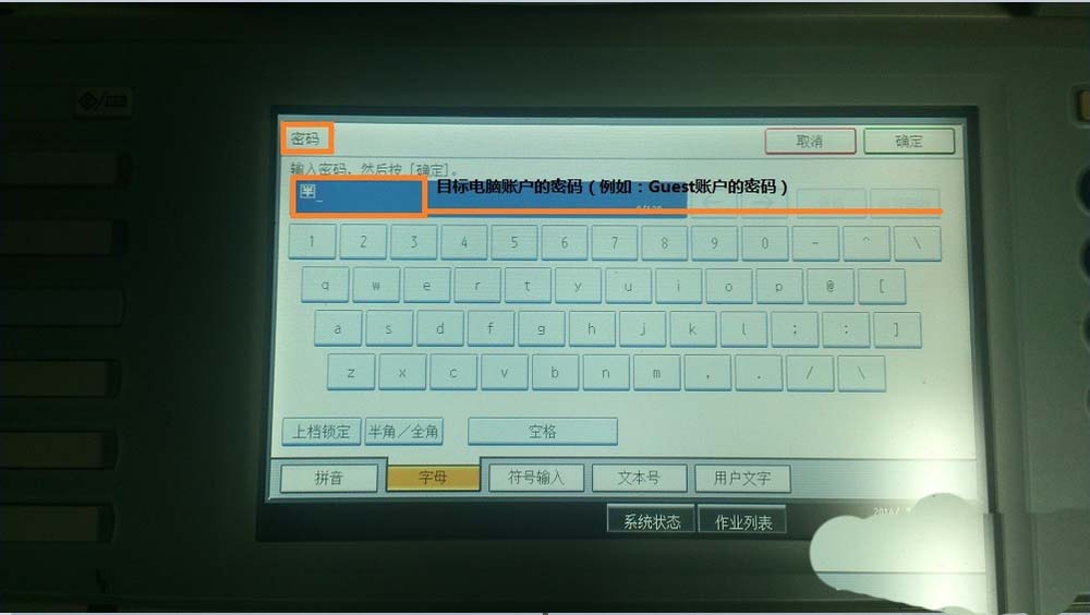 7、用戶名---這里指的是,需要---存放掃描文件電腦的“系統(tǒng)賬戶名稱”,在輸入框中輸入(例如Guest,等等)