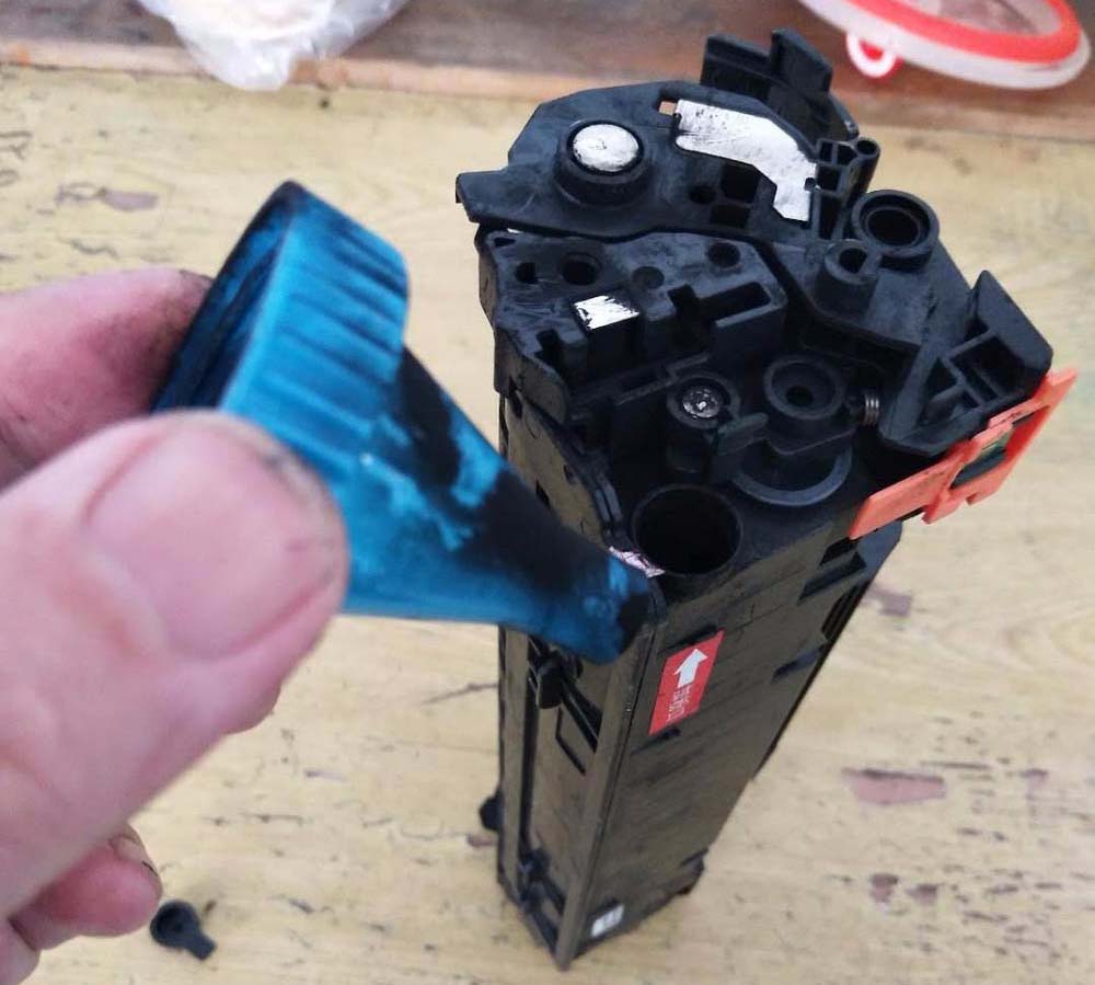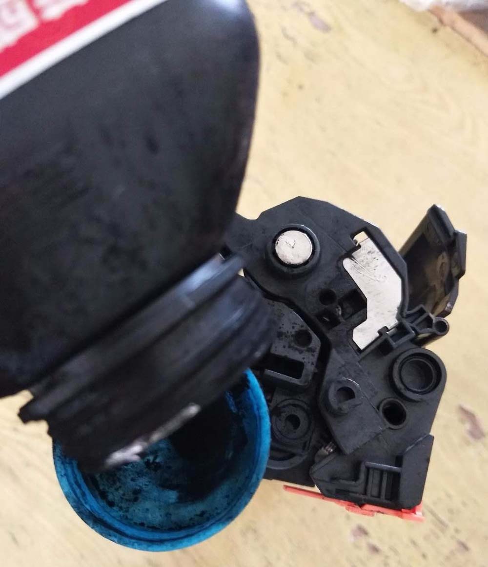 2、找到此處“廢粉口“,打開(kāi)塞子,將里面的”廢粉“倒出、倒凈。之后,將塞子塞好。