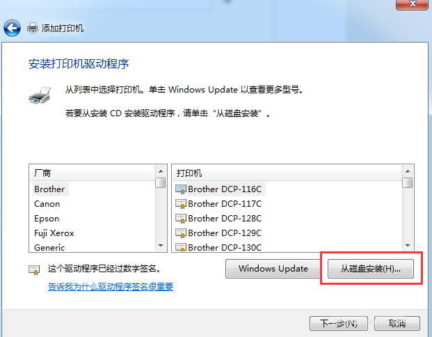 3、進入驅(qū)動安裝界面,“從磁盤安裝”-“瀏覽”-找到之前解壓的文件夾,選擇-“Autorun.inf”打開,確定,選擇1108驅(qū)動,下一步,之后的彈窗都點下一步,這里就不一一截圖了。