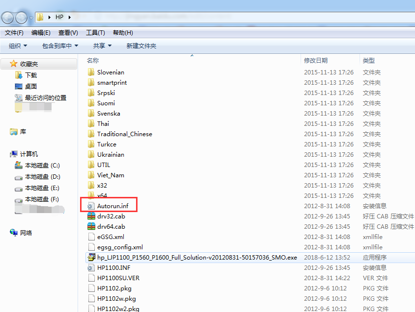 1、首先,要去惠普官網(wǎng)下載hp1108打印機驅(qū)動,將下載的驅(qū)動放入新建文件中,右鍵點擊“解壓到當前文件夾”,會解壓出很多文件,記住“Autorun.inf”文件,后面會用到。
