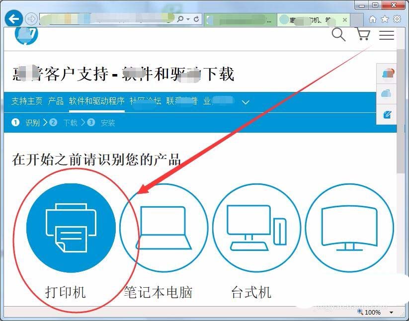 4、惠普軟件和驅(qū)動(dòng)下載官網(wǎng)中,首先要識(shí)別自己的產(chǎn)品,選擇打印機(jī)。