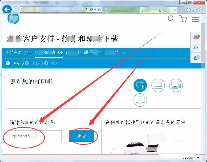 5、接下來(lái)的頁(yè)面中,輸入打印機(jī)的型號(hào),單擊提交。