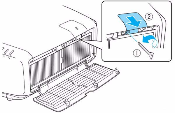 1、打開投影機后蓋的過濾蓋