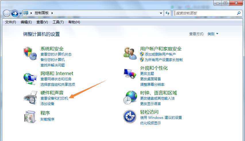 3、在打開的'控制面板'窗口中,選擇'查看設備和打印機'。