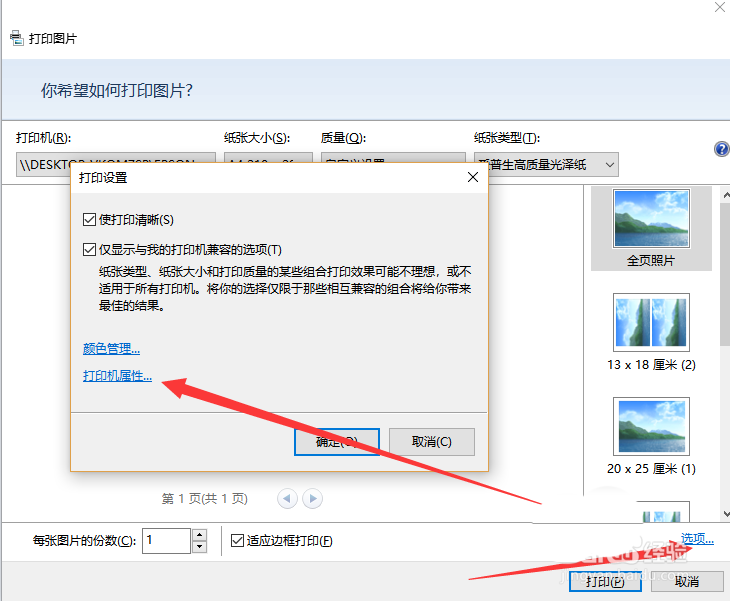 4、設置好對打印機屬性進行設置,點擊選項---打印機屬性