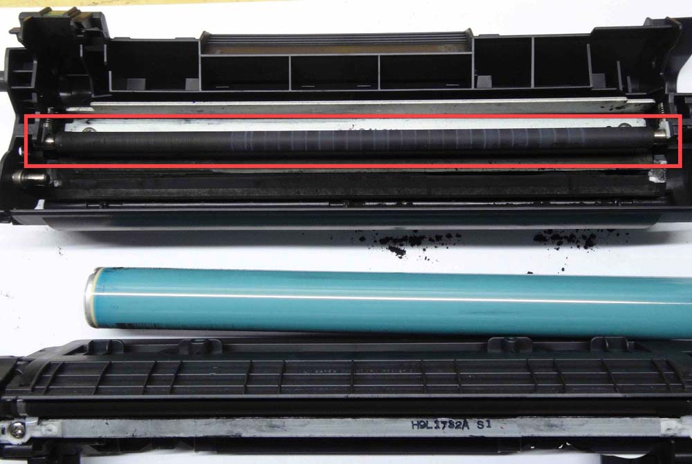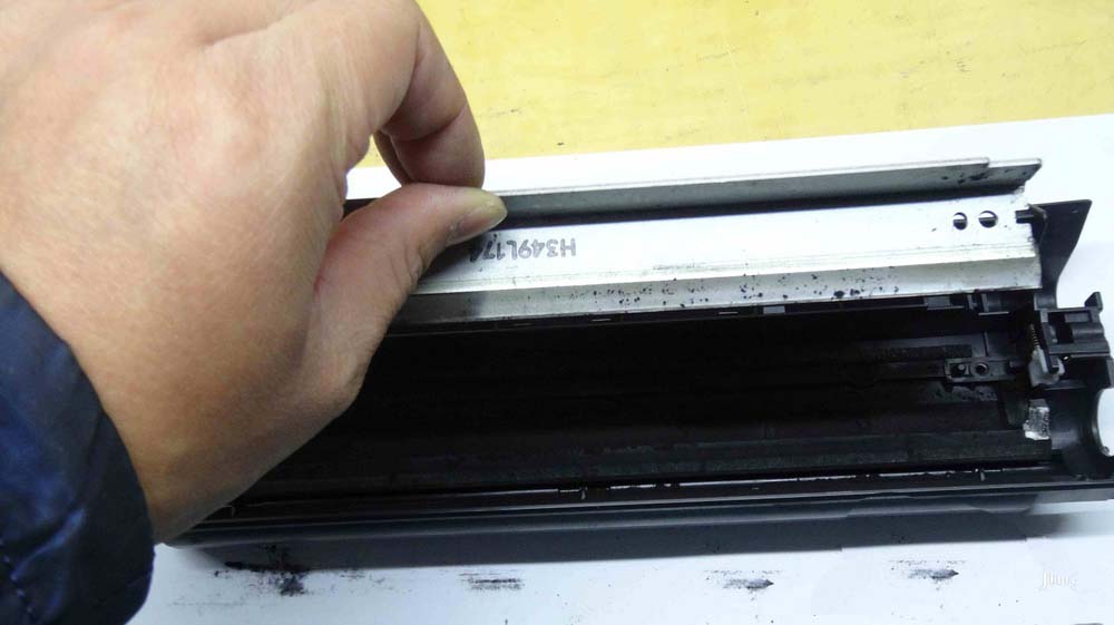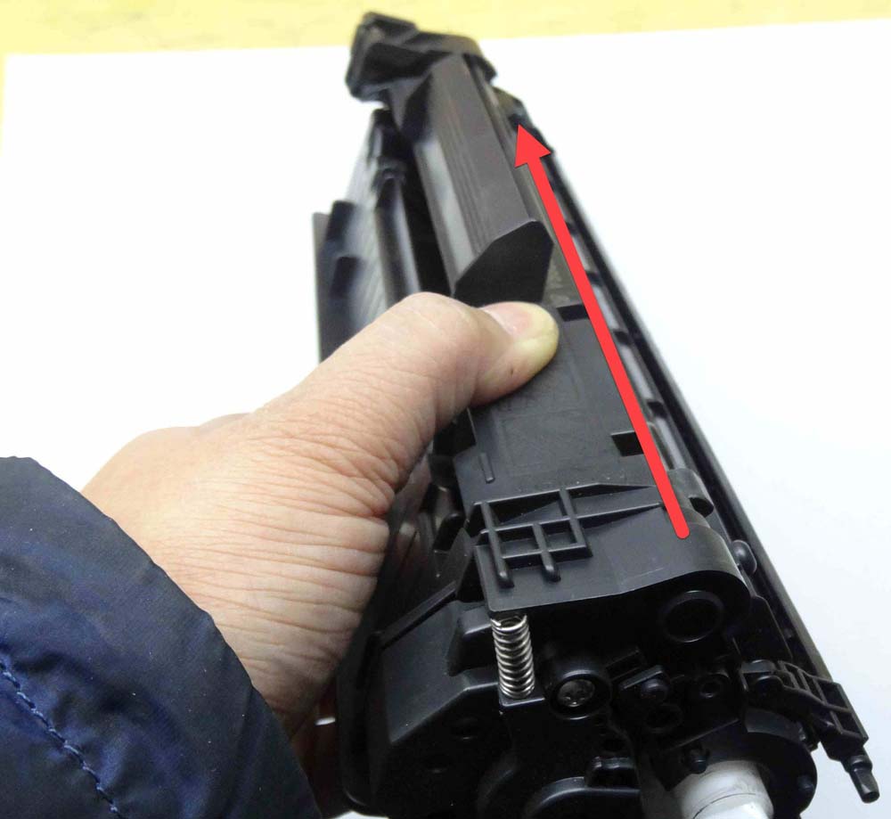 3、按箭頭方向一推,將粉倉和鼓芯部分分離