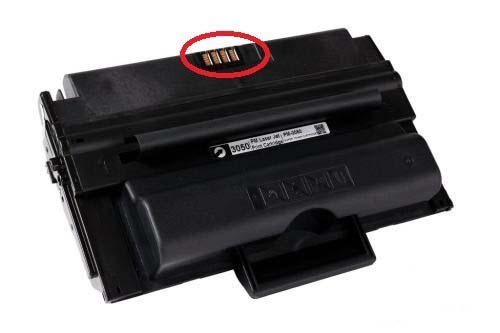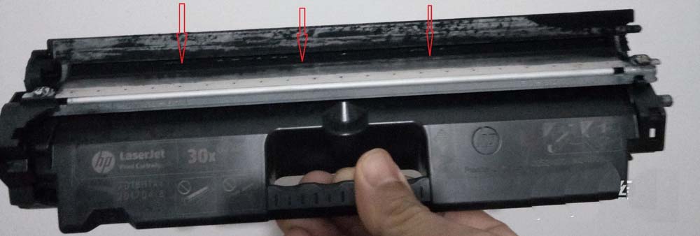5、還要清潔硒鼓上的幾個電接觸點(diǎn),防止接觸不良,如下圖所示:
