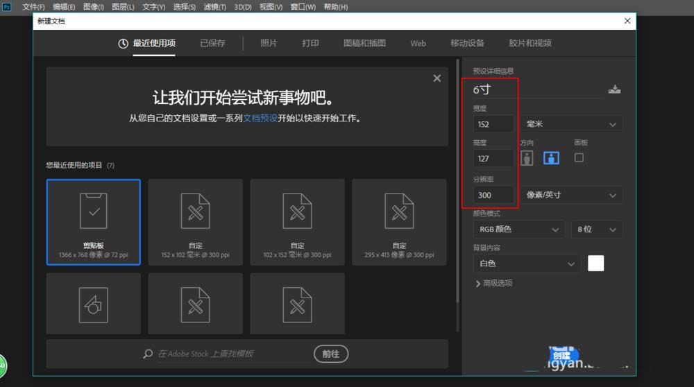 5、打開PS,照下圖新建個,我用的PS2018 CC