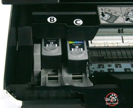 2、如圖2,B是黑色墨盒,C是彩色墨盒。哪個用完就換哪個。