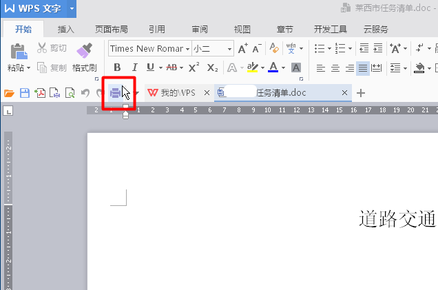 1、Word打印怎么設置?以《道路交通秩序大整治行動責任清單》文件為例,找到左上角的【打印】按鈕。