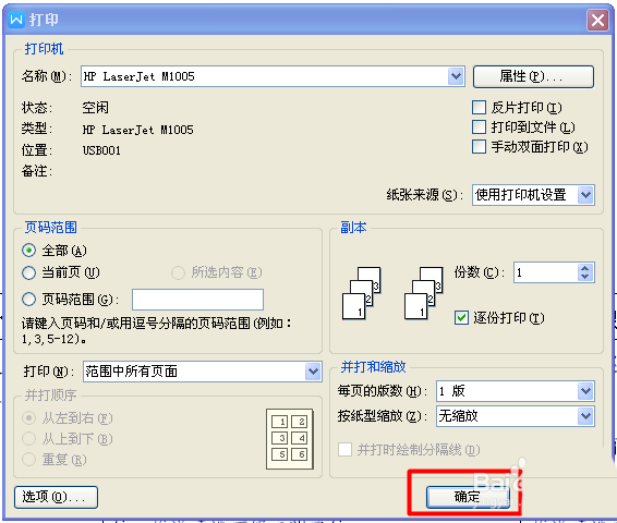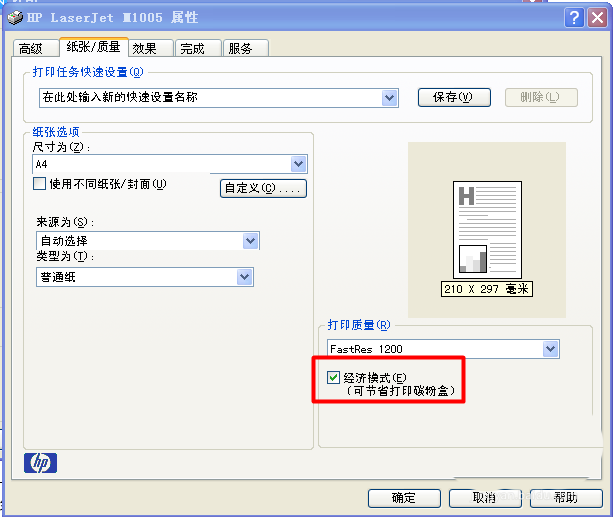 5、經濟模式怎么設置?打完鉤就可以點擊【確定】了,關掉M1005屬性對話框。再點擊打印對話框的【確定】,就可以打印文件了。
