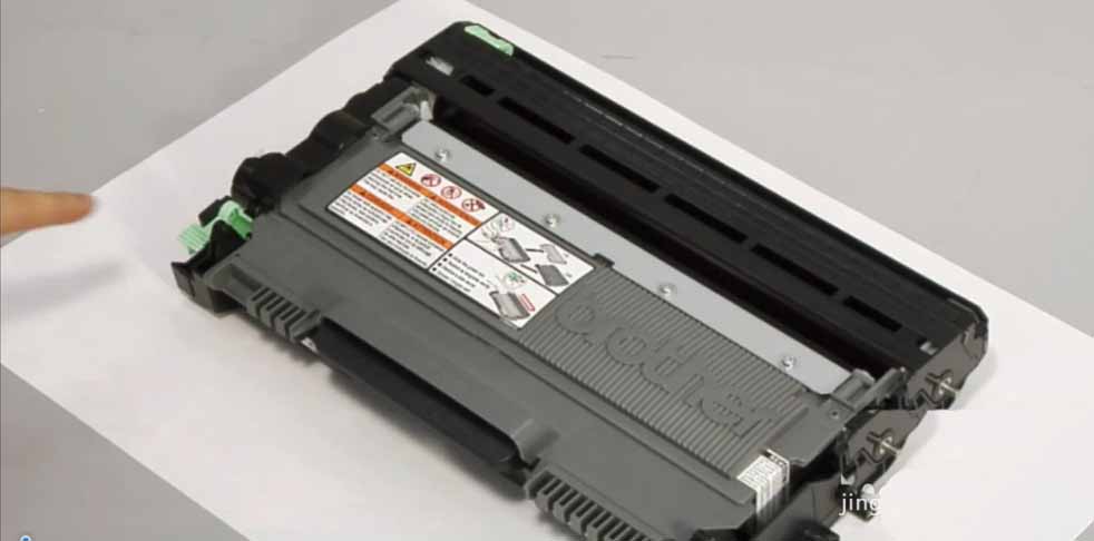 3、建議您將硒鼓單元和墨粉盒組件放在一張易處理且表面干凈平整的紙上,以防止墨粉意外溢出或濺出。