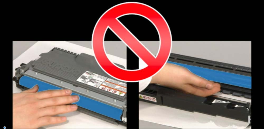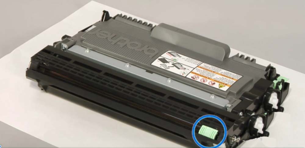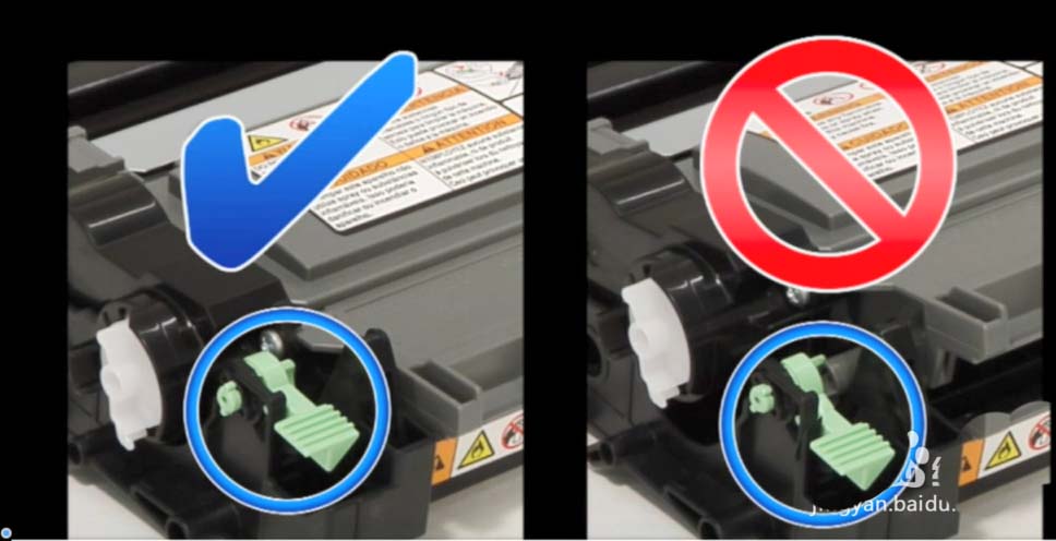 6、將新的墨粉盒牢固地裝入硒鼓單元直至其裝入到位并發(fā)出咔噠聲。確保正確裝入墨粉盒,否則它可能會偏離硒鼓單元。當你安裝正確時,鎖定桿會自動彈起。