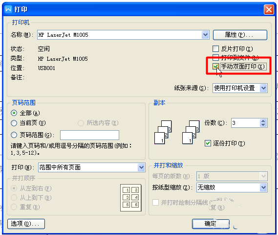 雙面打印的功能不是自動的,需要大家自主選擇,并且打印過程也不是全自動的,請勾選右上角【手動雙面打印】復選框。