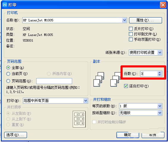 在雙面打印之前,先設定好打印文檔的份數,右中有一個【份數】按鈕。