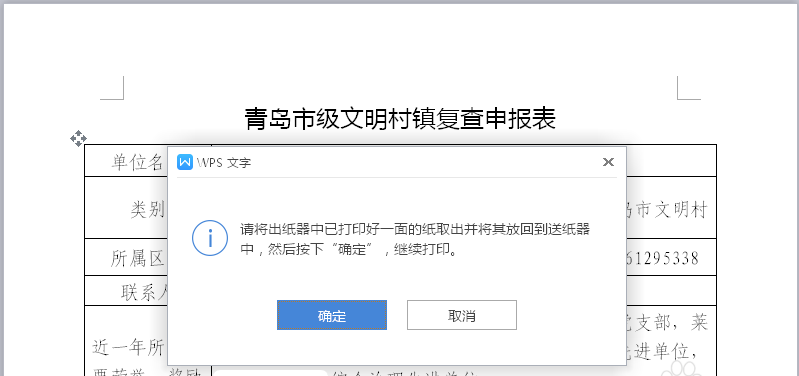 確定打印后,屏幕上會彈出一個【請將出紙器中已打印好一面的紙取出并將其放回到送紙器中,然后按下“確定”,繼續打印】提示框。大家不用仔細看,記住一點就是:先別著急點確定。
