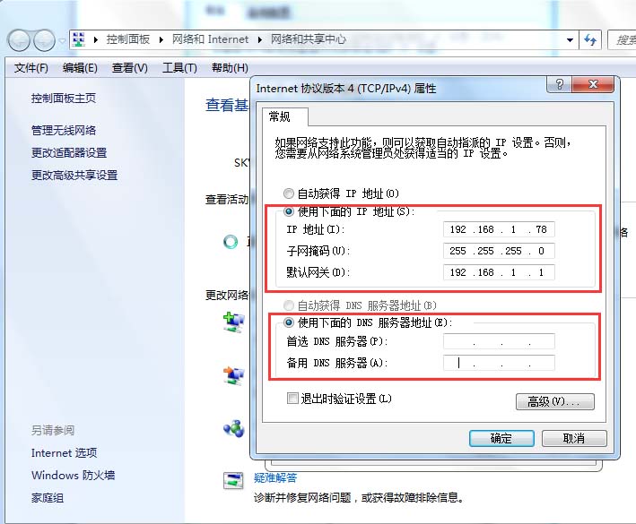 4、在Internet協議版本4(TCP/Ipv4)屬性框里將自動獲取IP地址改成使用下面的IP地址,IP地址的前三位是網段,例如:192.168.1,意思是該IP地址為點1的網段。子網掩碼都是:255.255.255.0;默認網關為:192.168.1.1。