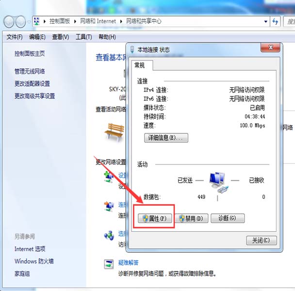 2、然后點擊本地連接,點擊本地連接后,會出現一個本地連接的彈框,然后點擊屬性。