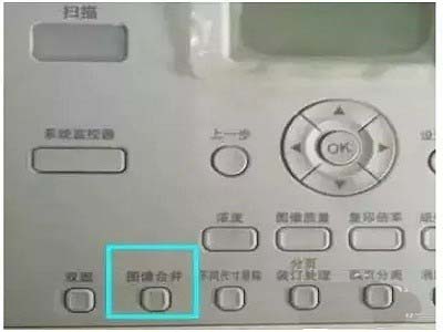 4、找到復印機上的一個按鈕【圖像合并】。合并的意思就是將身份證的正反面合并在同一頁紙上。