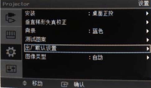 4、再次確認投影是否壞掉,按遙控器,MENU菜單,進入投影機設置項,把投影機設成出廠設置。這樣的話,問題就能得到有效的解決。