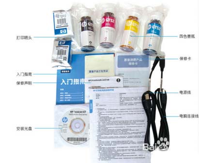 2、入門指南、安裝光盤。(收到打印機后可按照入門指南上的提示進行安裝操作。)
