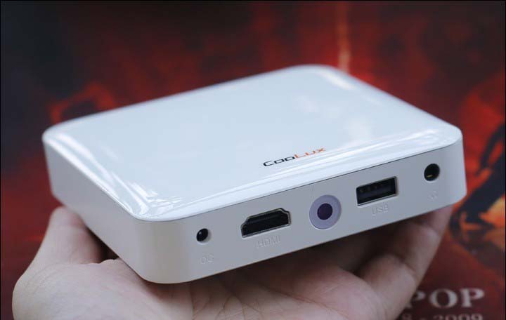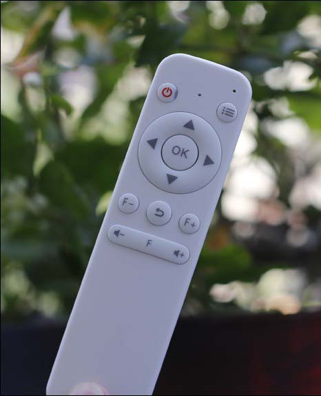 3、純白色的外觀設(shè)計(jì),也算比較好看,帶有HDMI輸出,電源輸入 紅外遙控輸入,USB插口,以及3.5mm耳機(jī)插孔