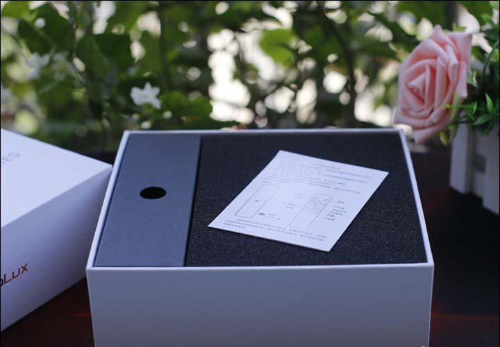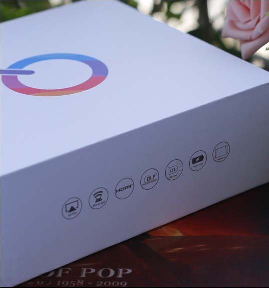 1、酷樂(lè)視Q7S 微型投影機(jī)采用了純白色的包裝盒設(shè)計(jì),帶有一個(gè)彩色的Q標(biāo)示
