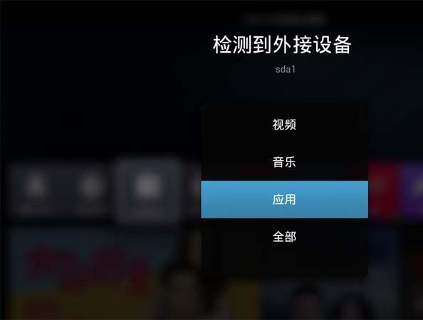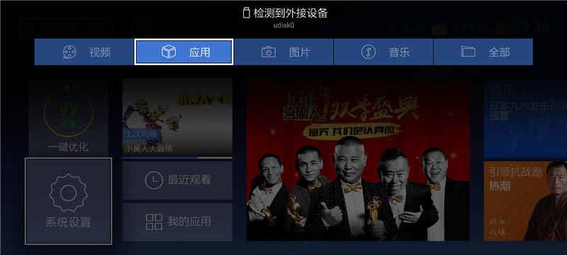 2、將U盤連接投屏儀的USB接口,當(dāng)系統(tǒng)檢測(cè)到U盤時(shí),選擇“應(yīng)用”并打開,即可找到安裝包