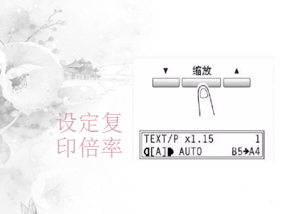 一般復印機的放大僅有一檔,按下放大鍵即可,縮小倍率多以A3-A4,B4-B5或百分比等表示,了解了復印紙尺寸,即可很容易地選定縮小倍率。如果無需放大、縮小,可不按任何鍵。