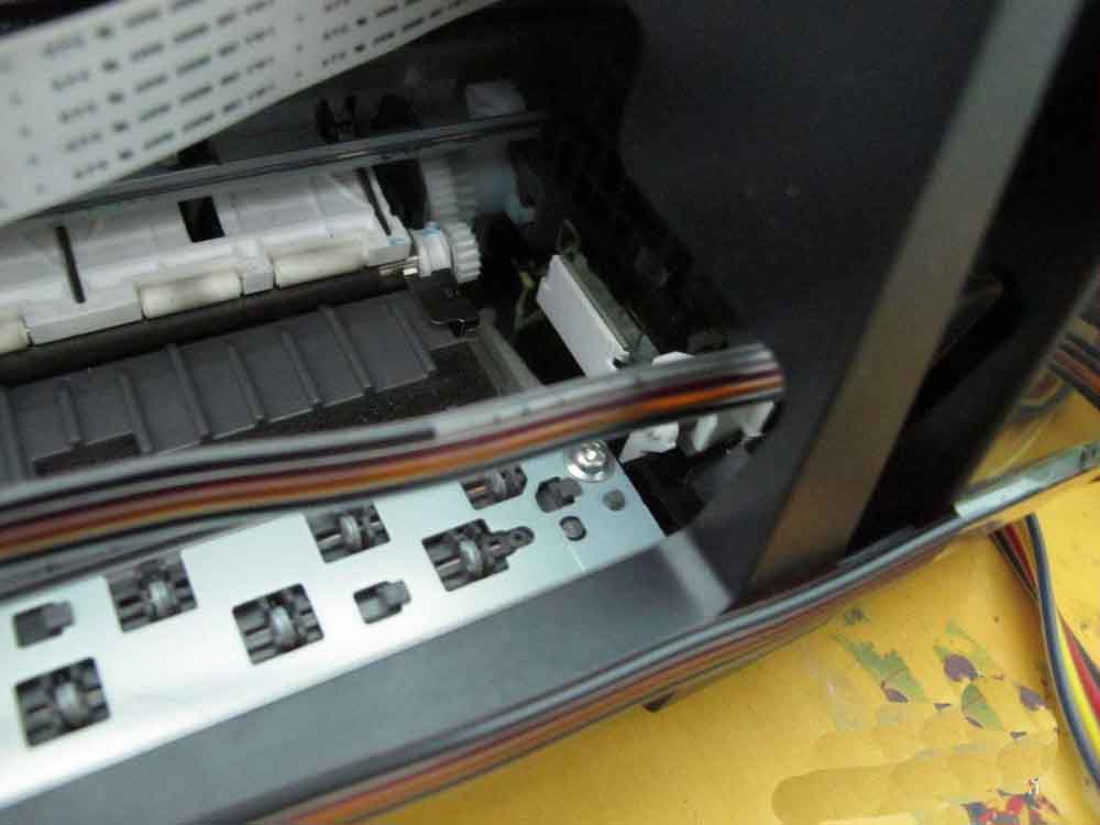 3、將挖空的橡皮扣在噴墨頭上,小心抽動注射器,避免大量墨水浪費,如果缺某種色可以將其它管路壓憋,只抽取其中一個管路的墨水。然后噴墨頭檢查打印,清洗。這種方法適合管路中進了大量空氣,好長一段里面沒有墨水的情況,少量空氣似乎不影響使用