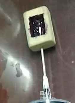 2、注意:注射器從橡皮側面插入,不要堵塞針頭。
