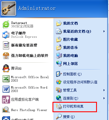 1、打開控制面板,選擇“打印機和傳真”,或直接點擊“開始”--打印機和傳真。
