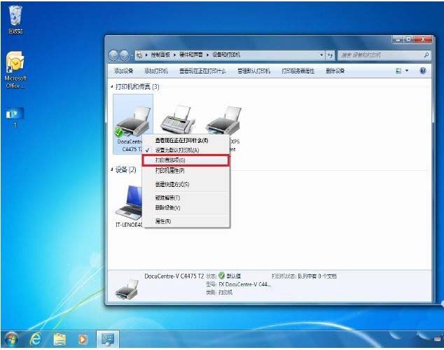 2、選擇目標打印機,右鍵快捷菜單選擇“打印首先項”