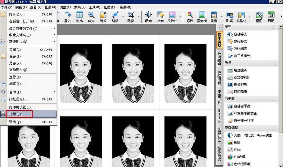 1、首先我們找到一張彩照,然后用光影魔術手打開他,然后我們安裝證件照排版將版制作好,如下圖所示;