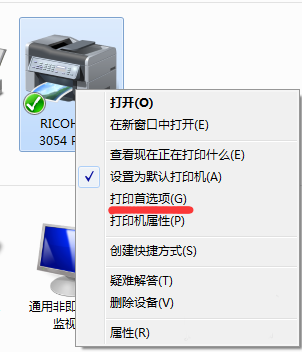 3、如果是在MPC3054PCL6的圖標上點右鍵,選打印機首選項,會出現以下界面