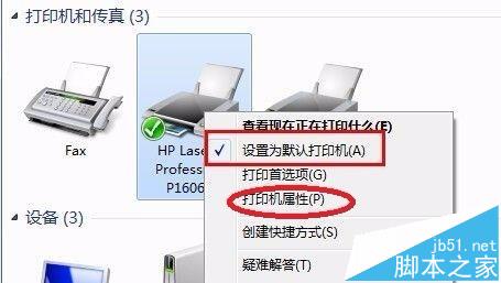 2、看到打印機右鍵單擊打印機屬性,確保它是默認打印機