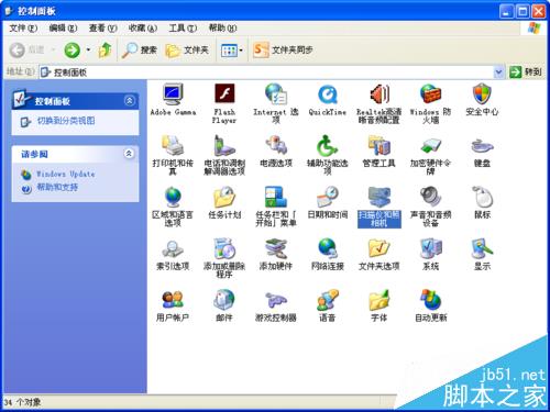 5、執(zhí)行開始-控制面板命令,打開控制面板選項,找到掃描儀和照相機。