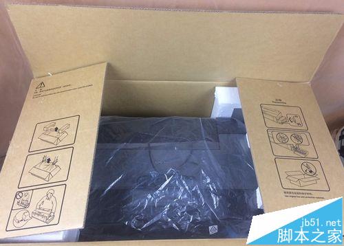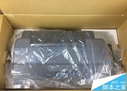 6、徹底打開盒子,看到保護打印機的塑料泡沫。將保護塑料泡沫拿開,進入眼簾的就是我們的打印機。