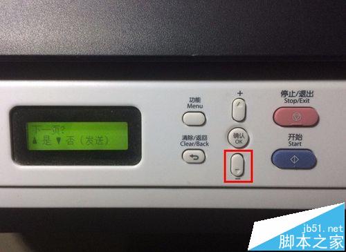 4、等待片刻,液晶屏?xí)崾?ldquo;下一頁,是否(發(fā)送)”,我們選擇否,就是按“-按鈕”。如果按“+按鈕”,系統(tǒng)就會才掃描一遍。這時,電腦桌面就會自動打開你掃描的文件。