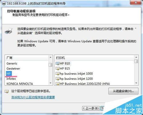 6、進入安裝向導后,點擊”下一步“,在彈出的窗口左側選擇打印機的品牌,右側會羅列出可供安裝的打印機型號,選擇與你機器型號相近的進行安裝。