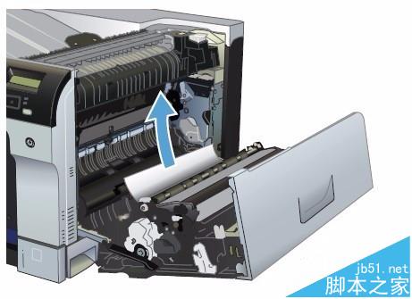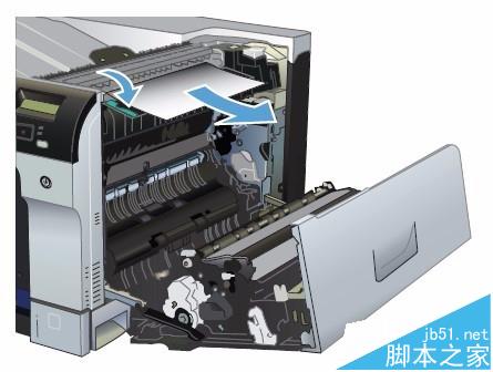 4、如果雙面打印通道中有卡紙,請輕輕地將其平直拉出。見下圖