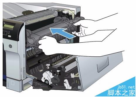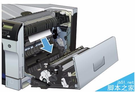 2、 如果看到紙張進(jìn)入熱凝器底部,請輕輕向下拉以將其取出。見下圖