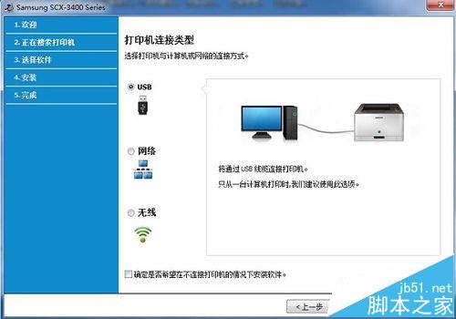6、開(kāi)啟打印機(jī),然后使用USB電纜連接打印機(jī)和計(jì)算機(jī)。單擊“下一步”,按提示就可以安裝好驅(qū)動(dòng)了。