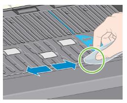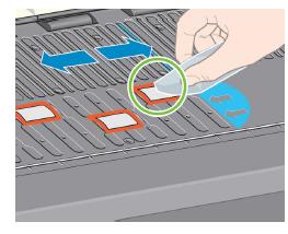 注意:如果您在打印窄幅紙張后打印寬幅紙張,可能會發現打印平臺左側變臟了。 如果不清潔打印平臺變臟部分,打印時可能會在紙張背面留下污漬。