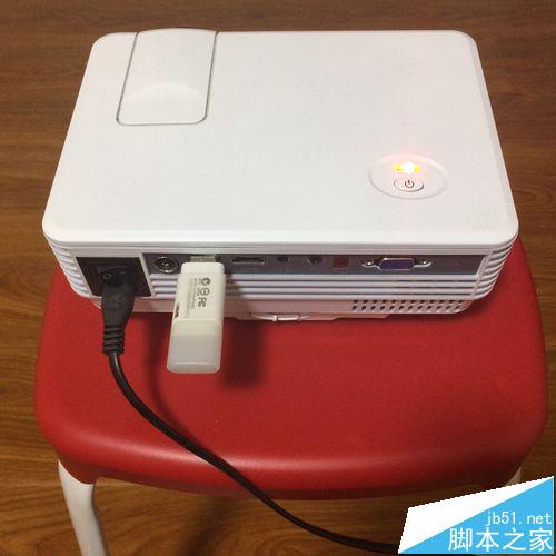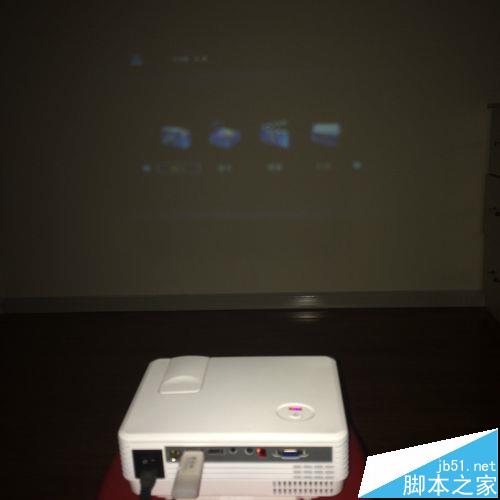 1、首先,向U盤里下載一些高清的電影電視劇目,且視頻的格式為常規(guī)使用的mp4格式、mkv格式、avi格式等;接著將U盤插入投影儀后面的USB接口中,連接電源線打開投影儀,如圖所示。