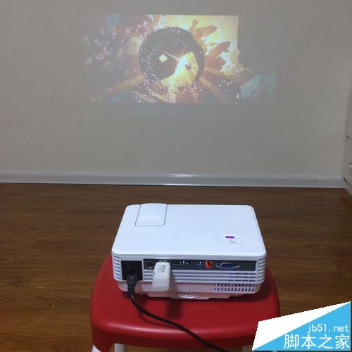 2、打開投影儀后,我們發(fā)現(xiàn)投影儀投射到墻面上以后不是很清晰,需要調(diào)整焦距,使顯示的畫面更加清晰,如圖所示。
